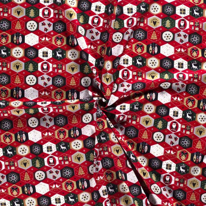 Stitch It, Christmas Metallic Fabric | Christmas Hexagon Red