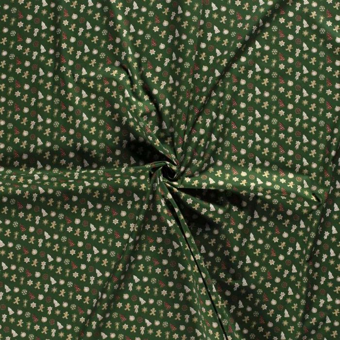 Stitch It, Christmas Metallic Fabric | Festive Gingerbread Man Green