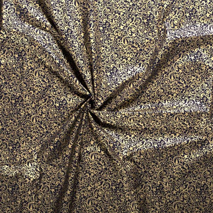 Stitch It, Christmas Metallic Fabric | Star Swirl Navy