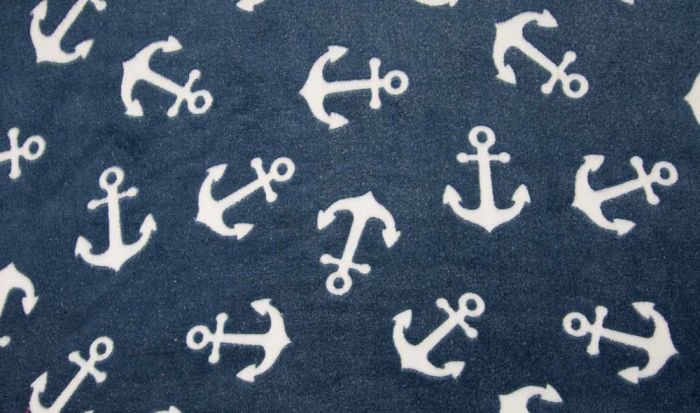 Fantastically soft fleece with a Anchor print design on a navy background. Ideal for dressing gowns & children's projects - just makes you want to cuddle it!
