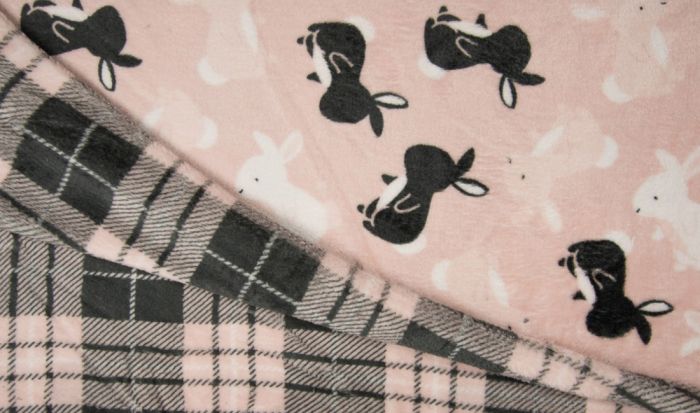 Double Sided Design - fantastically soft fleece featuring a Bunny design front & Tartan reverse. Ideal for dressing gowns & children's projects - just makes you want to cuddle it!