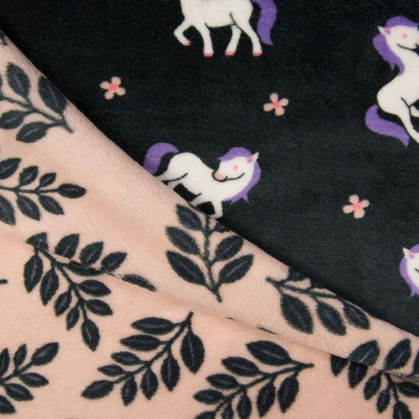 Double Sided Design - fantastically soft fleece featuring a Unicorn design front & Leaves reverse. Ideal for dressing gowns & children's projects - just makes you want to cuddle it!