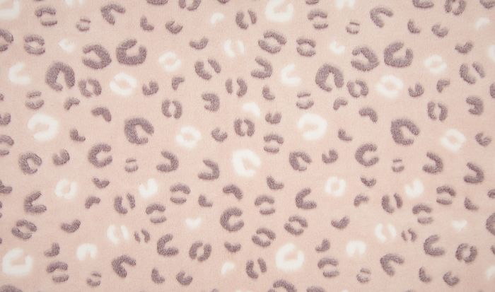 Fantastically soft fleece with a Leopard print design on a rose background. Ideal for dressing gowns & children's projects - just makes you want to cuddle it!