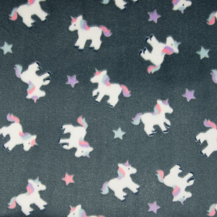 Fantastically soft fleece with a Unicorn print design on a grey background. Ideal for dressing gowns & children's projects - just makes you want to cuddle it!