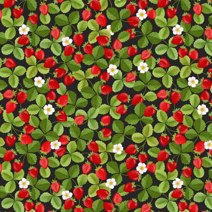 Teddy Bear's Picnic Lewis & Irene Fabric | Strawberries Black