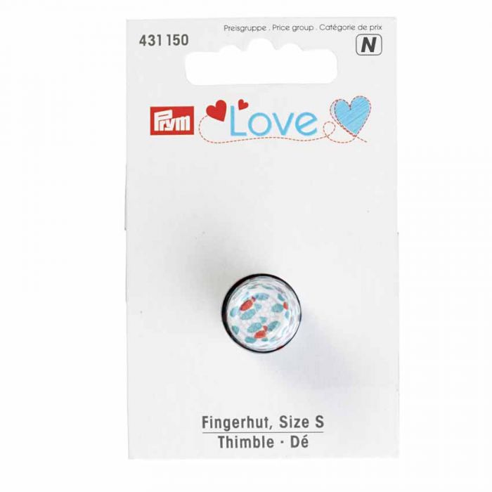 The colourful “Prym Love” thimbles are very appealing with floral patterns on white, red or light blue backgrounds.