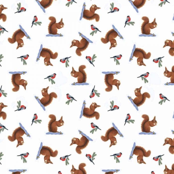 Tomtens Forest Friends Lewis & Irene Fabric | Squirrels White