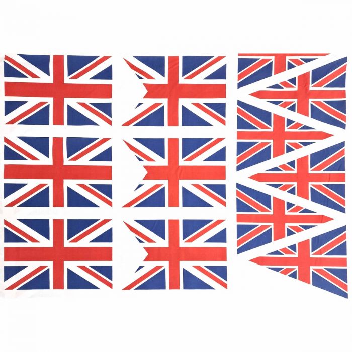 Union Jack Fabric - Pure Cotton, UK Printing | Bunting Panel - Classic, Swallow Tail & Tab