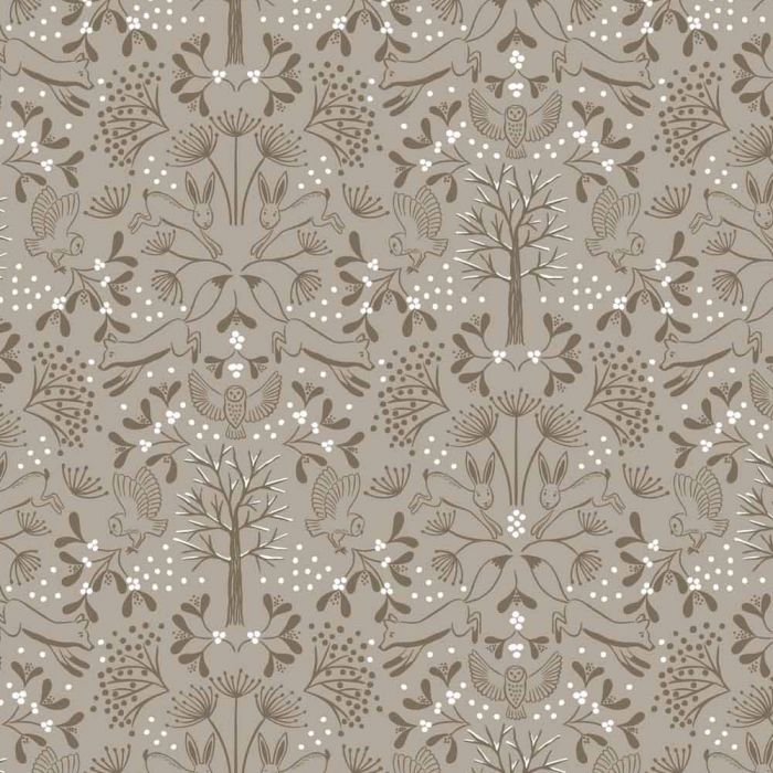 Winter In Bluebell Wood Lewis & Irene Flannel | Forest Animals Cappuccino