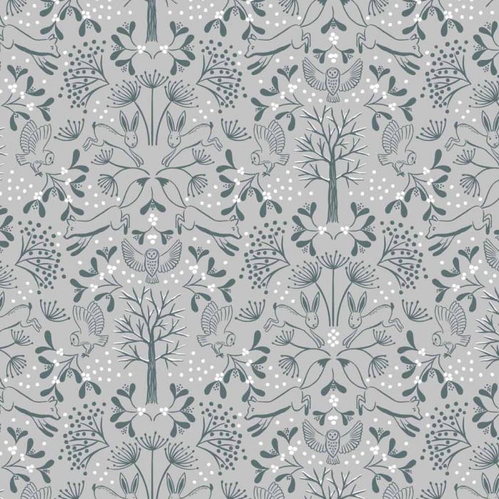 Winter In Bluebell Wood Lewis & Irene Flannel | Forest Animals Grey