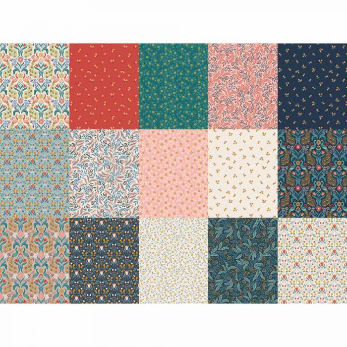 A beautiful arts & crafts inspired fabric collection featuring metallic elements for that finishing touch!