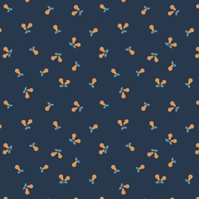 Wintertide Fabric | Pears Blue - Copper Metallic