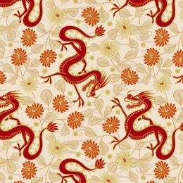Year Of The Dragon Lewis & Irene Fabric | Multi Year Of The Dragon Floral Cream, Metallic