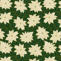 Yuletide Lewis & Irene Fabric | Festive Floral Cream Gold Metallic