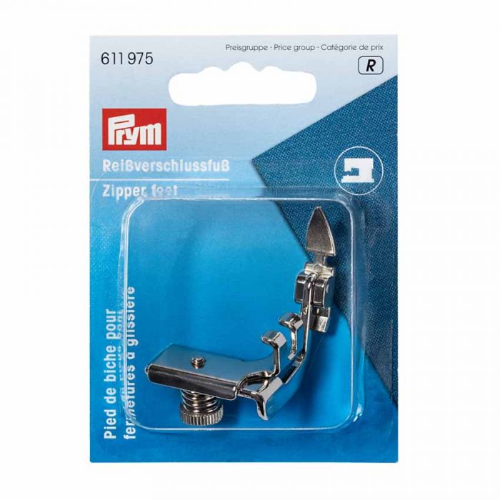 Zipper Foot for easy sewing in of standard zip fasteners on sewing machines with a clip pressure foot.